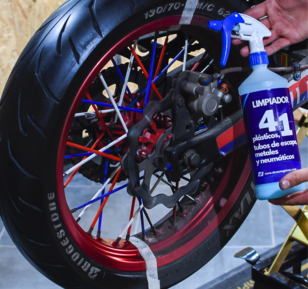 4 en 1 porque sirve para plásticos, hierros como puede ser el chasis, sirve como antioxidante para tubos de escape y limpia los perfiles de neumáticos.